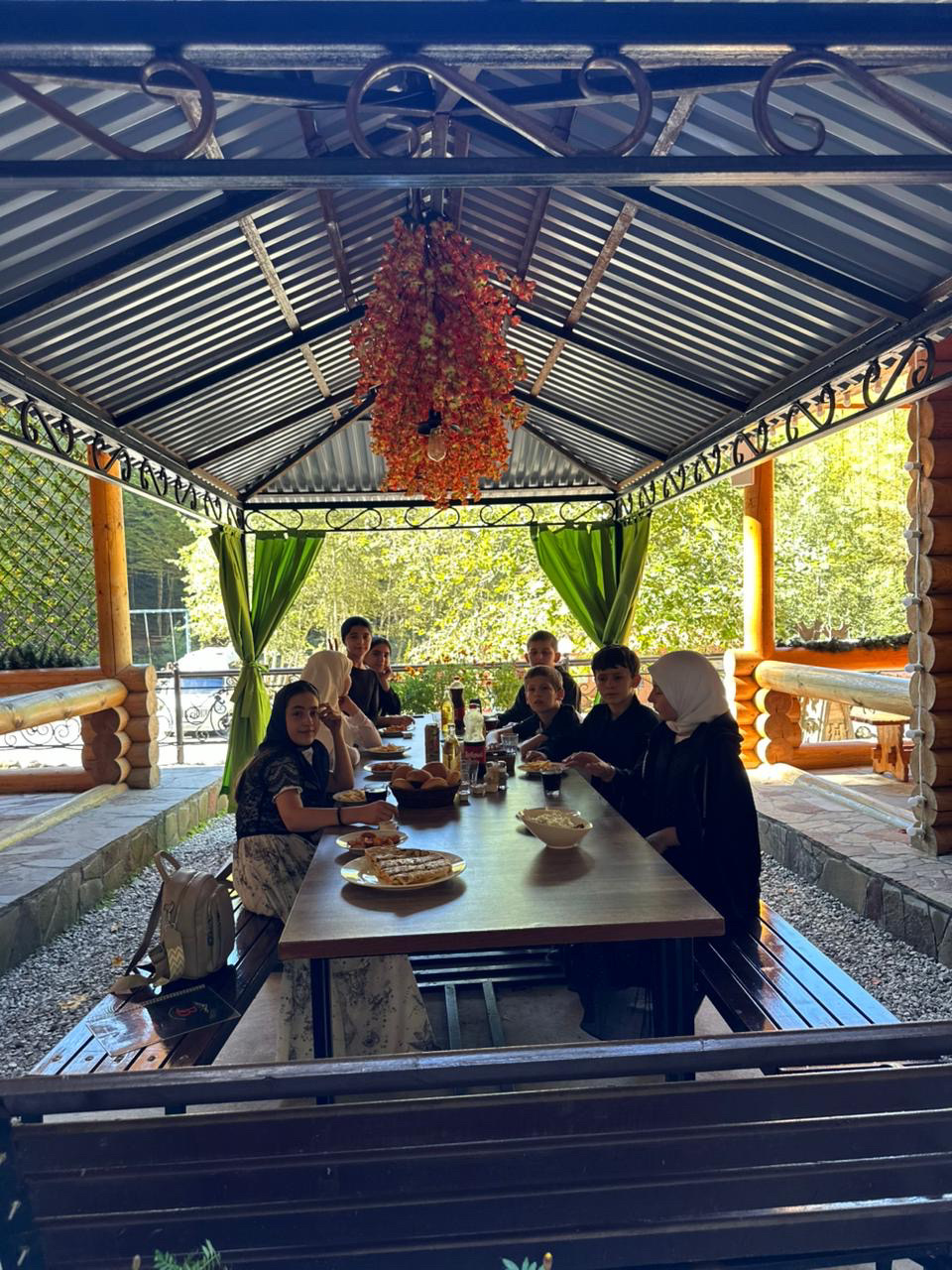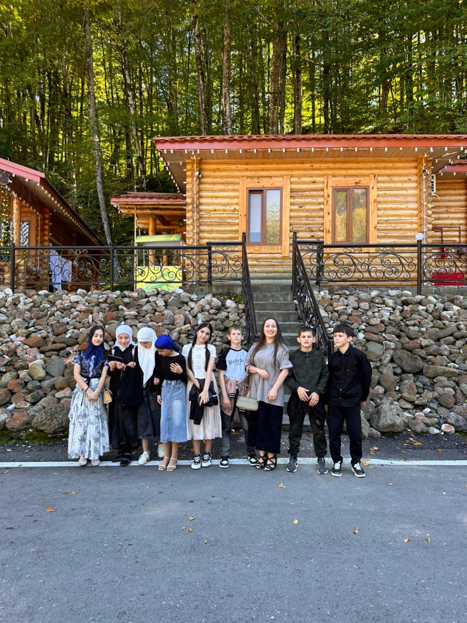 Архитектура комплекса выбрана так, что строения органически сливаются с природой. Даже железные мосты через реку, построенные для удобства туристов, воспринимаются как естественная часть природного ландшафта. Школьники, проголодавшись, посетили местный ресторан и насладились невероятным вкусом национальных блюд. Незабываемый восторг вызвали рыбки, живущие в чистейшем озере. Неожиданностью для детей стало то, что рыбки без страха приняли кусочки хлеба и полакомились на глазах у изумленной публики. Поднявшись по каменной лестнице, отдыхающим открылся невероятный вид. Посетив батут, и вдоволь нагулявшись, дети с незабываемыми ощущениями вернулись домой.